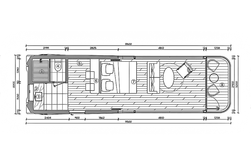 Electric pipe heating, mini induction cooker with range hood, mini fridge, custom storage cabinets, entrance staircase, capsule maintenance plans and protection insurance.